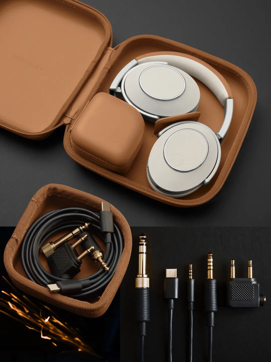 全新Solitaire T干邑白,琥珀色泽与皮革质感,完美诠释“时间淬炼的优雅”。机身采用CNC铝合金框架,表面经珍珠喷砂与阳极氧化处理,呈现出如陈年干邑般深邃的暖金属光泽。耳罩与头梁则选用环保皮革,触感如天鹅绒般细腻,且通过欧盟ECOCERT认证,将奢华与耐久融为一体。
